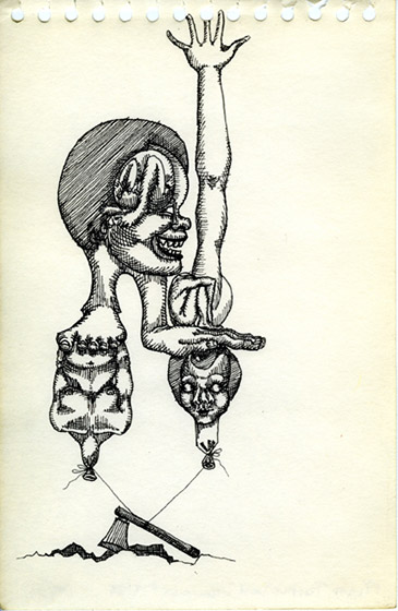 Rapidograph and/or pencil on paper, each 8½ x 5½" (21.5 x 14 cm). Detail: #18 of 35, India ink and