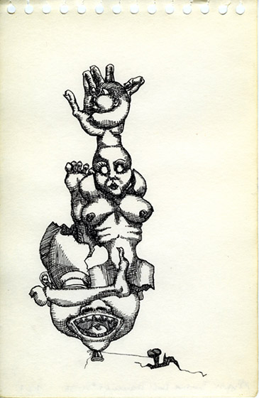 Rapidograph and/or pencil on paper, each 8½ x 5½" (21.5 x 14 cm). Detail: #14 of 35, India ink and